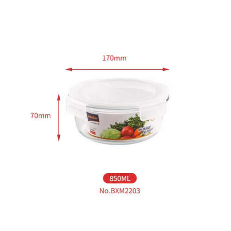 Borosilicate Glass Container With Lid Sealed Round 850 Ml