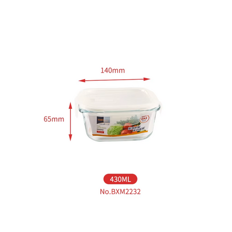 Borosilicate Glass Container With Lid Sealed Square 430 Ml
