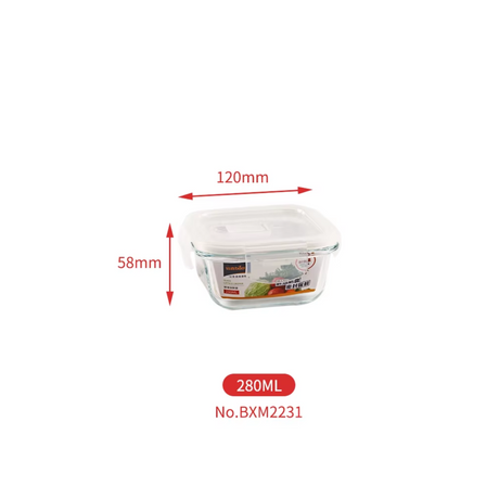 Borosilicate Glass Container With Lid Sealed Square 280 Ml