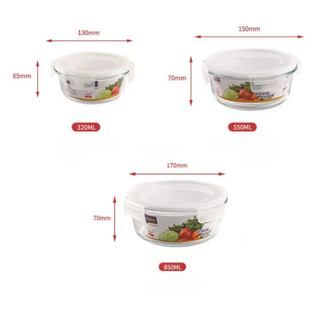 Borosilicate Glass Containers With Lid Sealed 3 pieces Round (320ml,550ml,850ml)